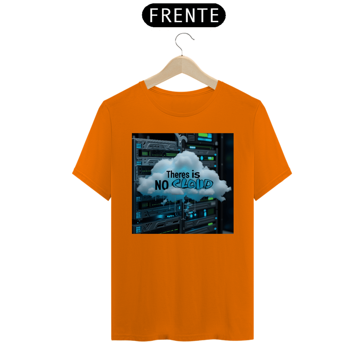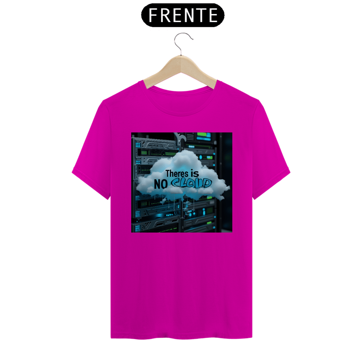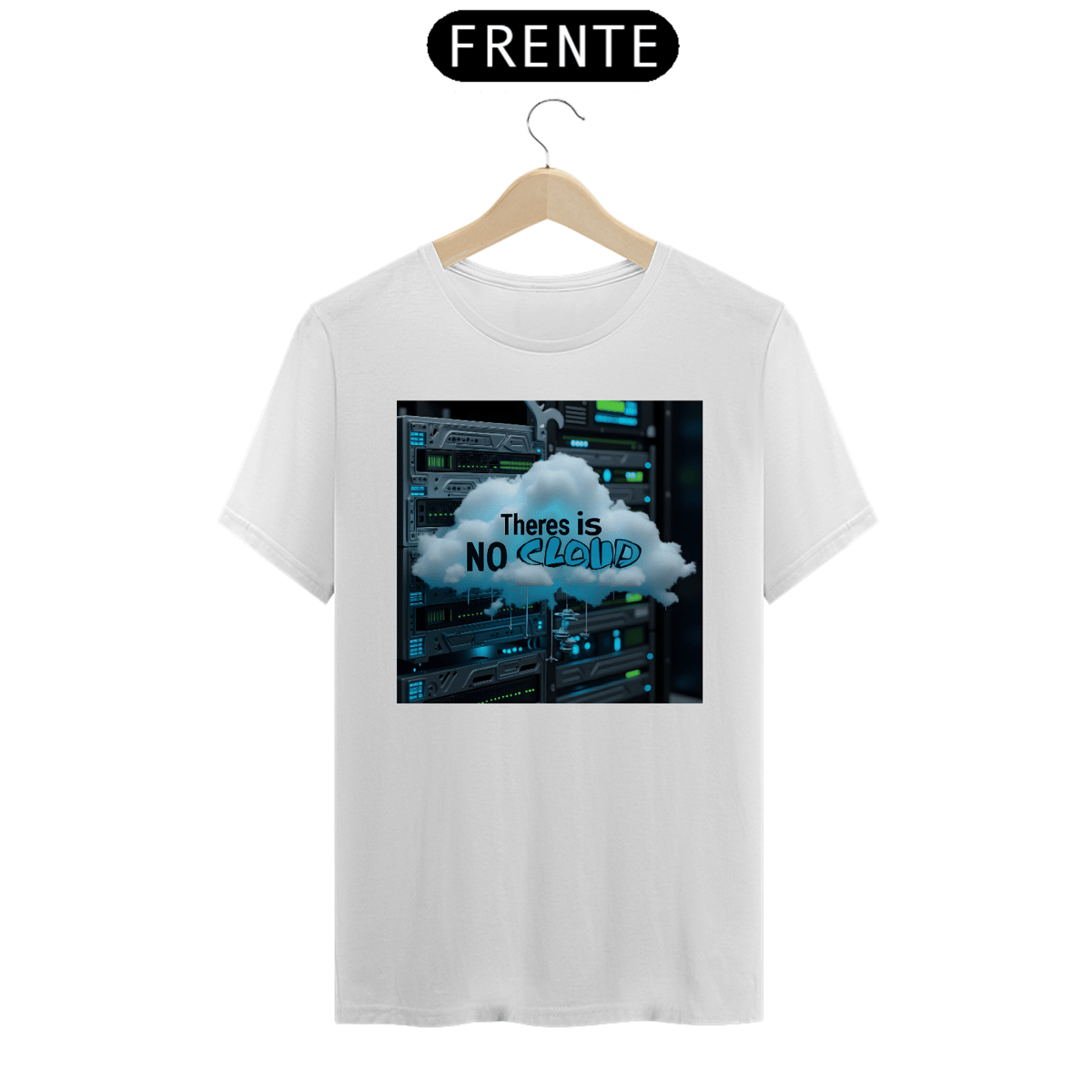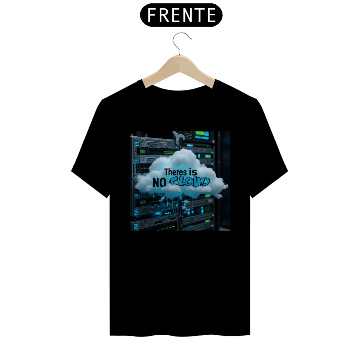 Tecnologia com personalidade, humor e estilo futurista! A camiseta "No Cloud" apresenta uma estampa vibrante e cheia de detalhes: um servidor high-tech com racks repletos de botões, telas e luzes azuis e verdes, criando a atmosfera típica de um data center avançado.