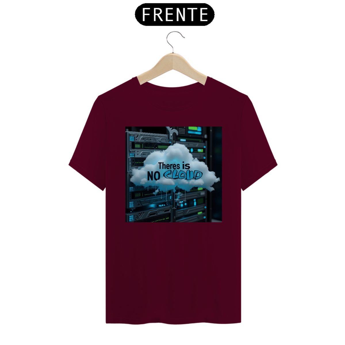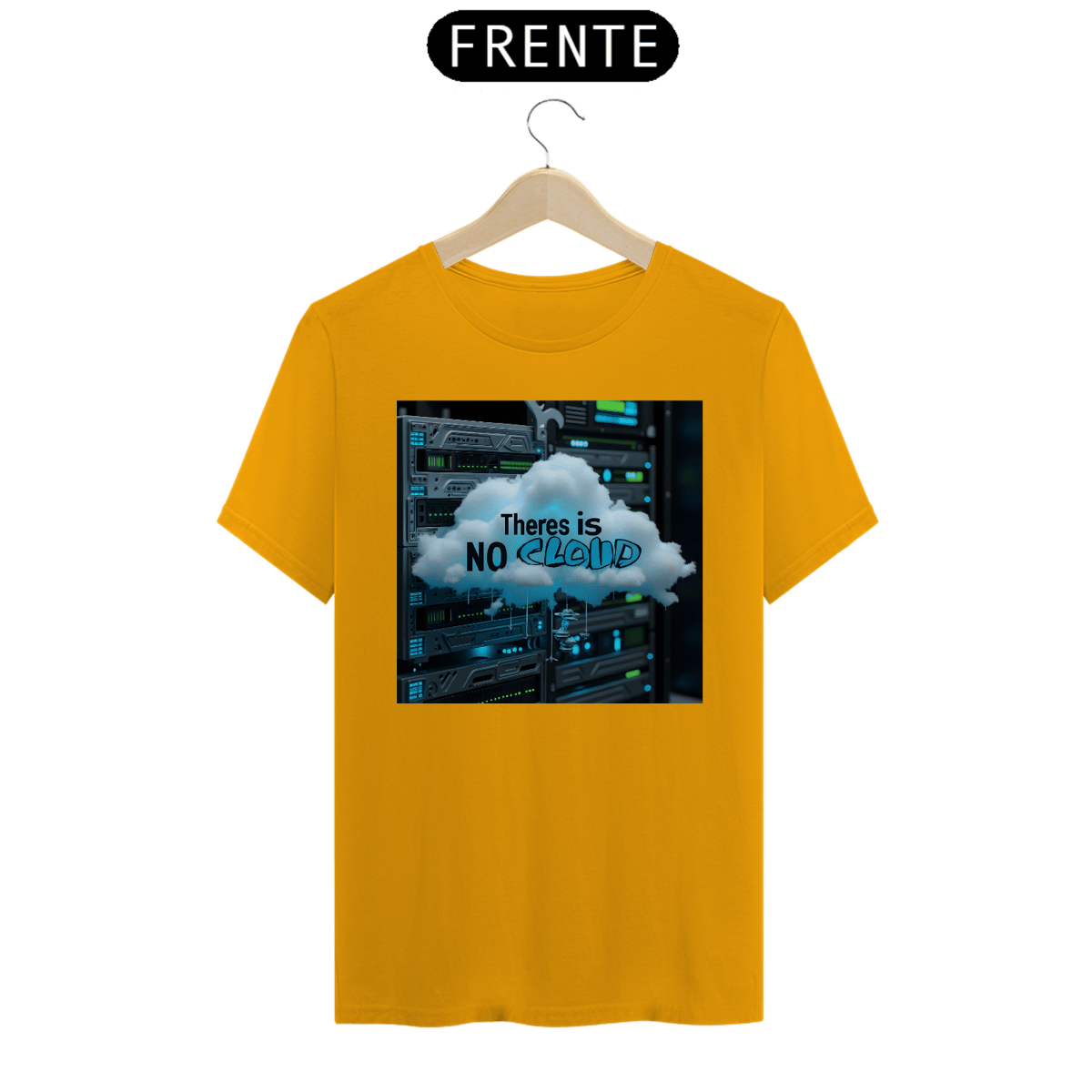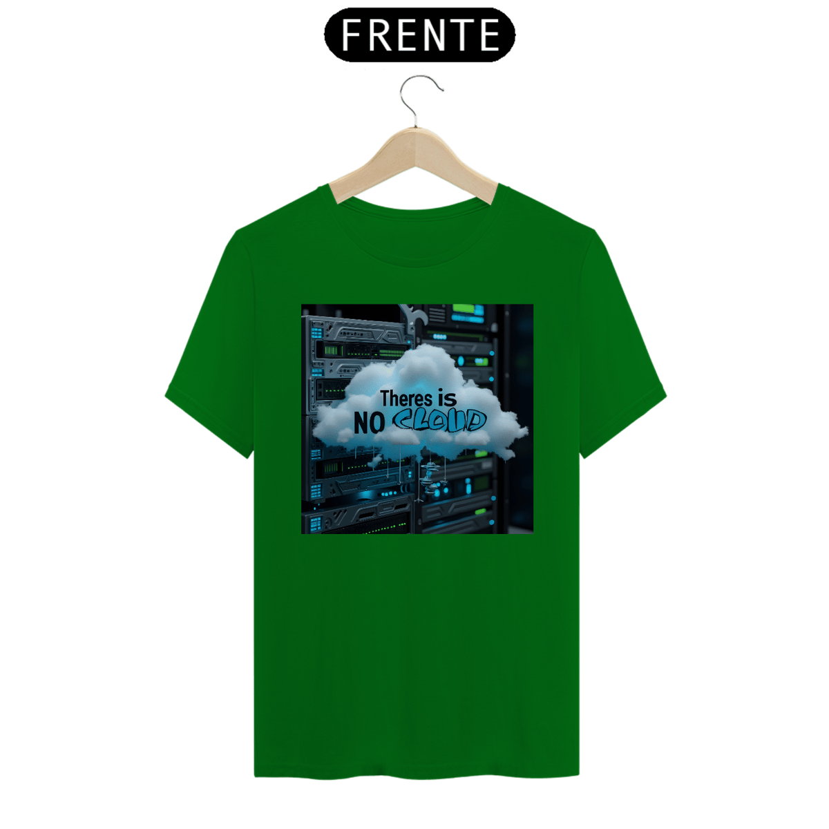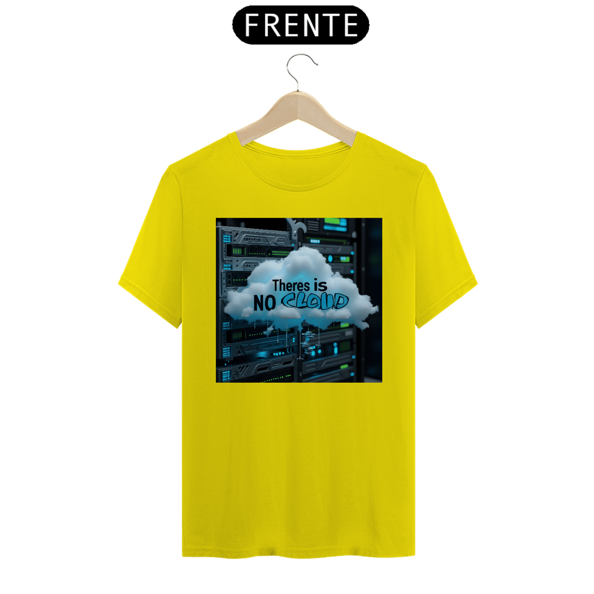 Tecnologia com personalidade, humor e estilo futurista! A camiseta "No Cloud" apresenta uma estampa vibrante e cheia de detalhes: um servidor high-tech com racks repletos de botões, telas e luzes azuis e verdes, criando a atmosfera típica de um data center avançado.
