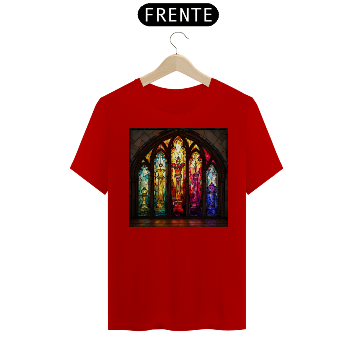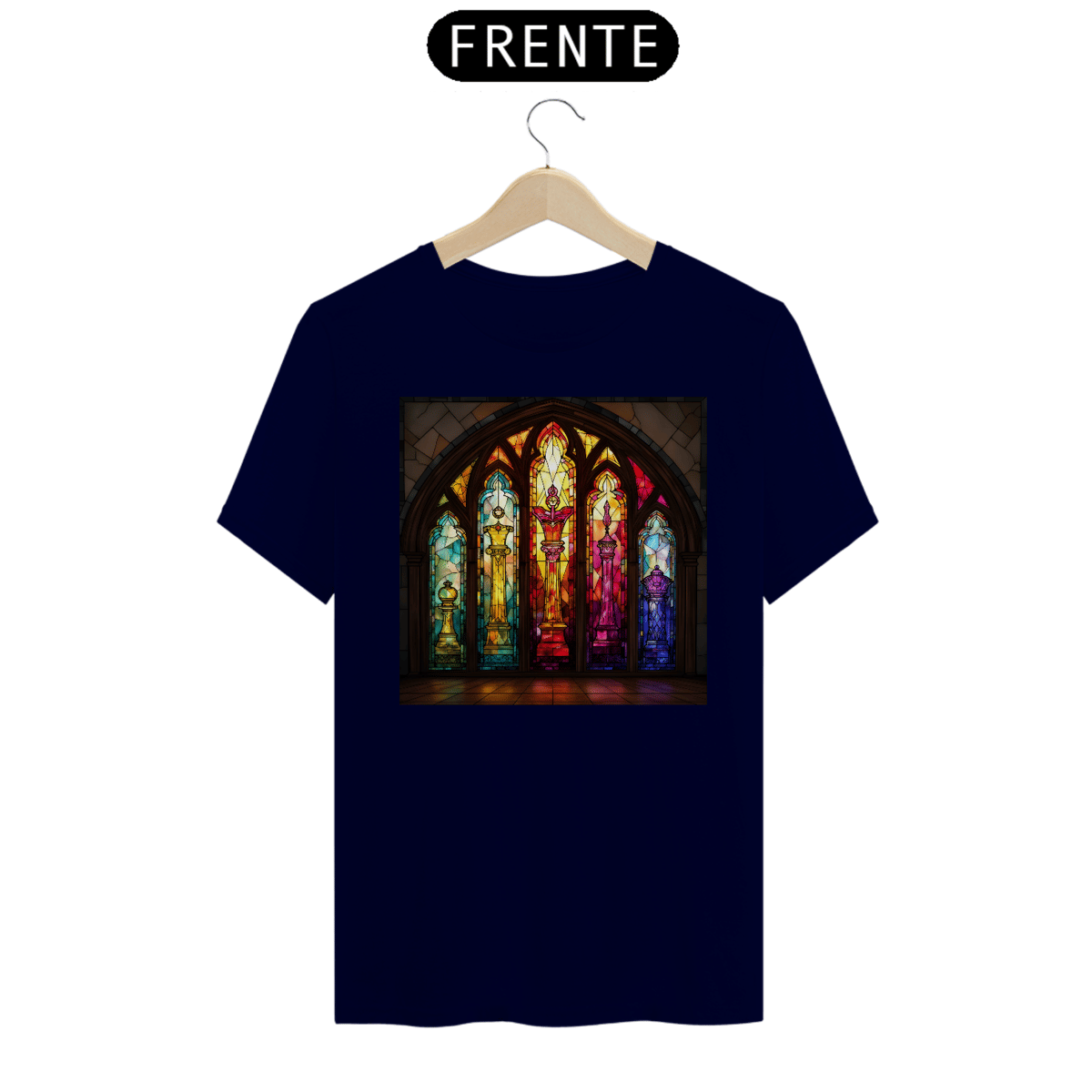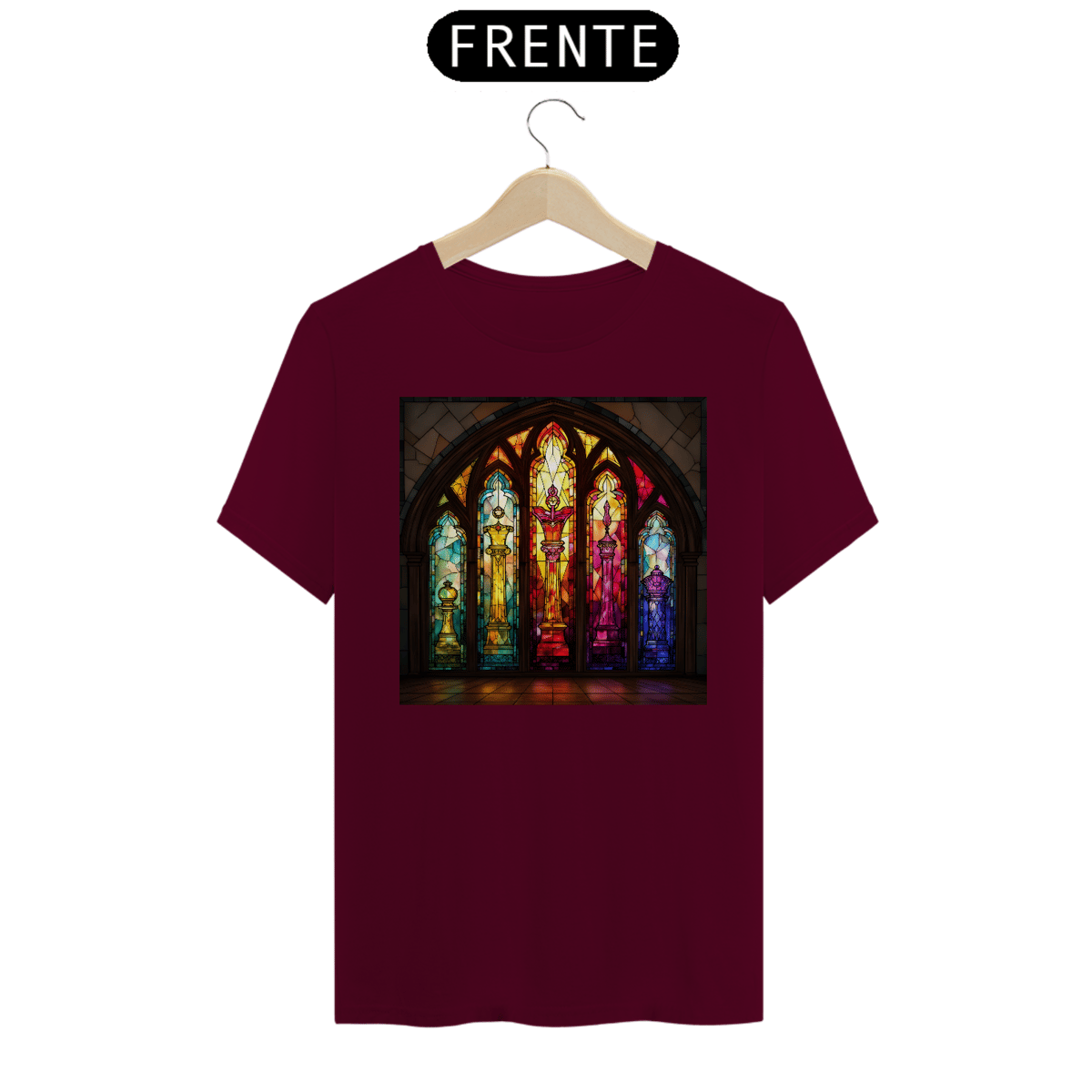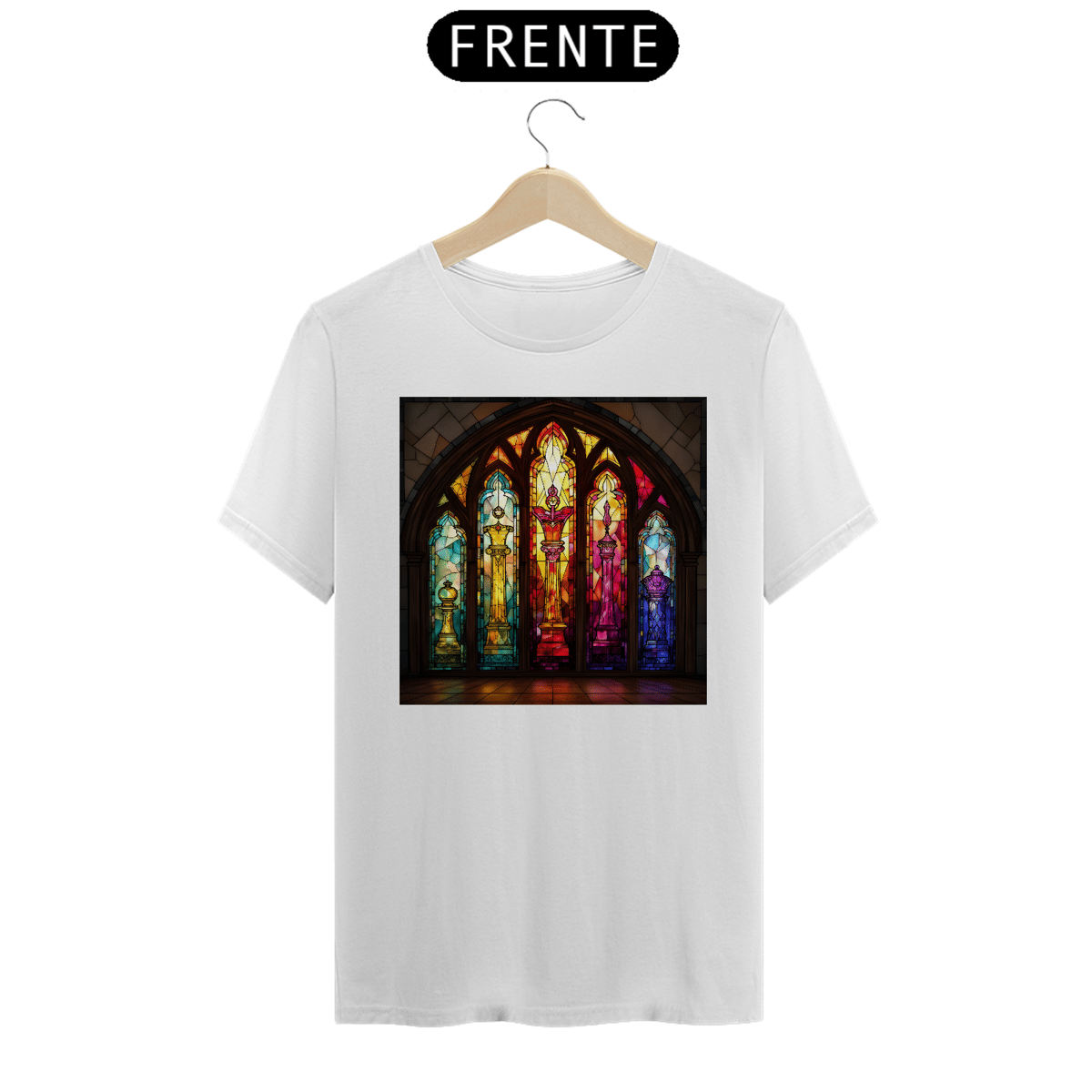 Uma peça para quem aprecia a beleza da estratégia e a força do simbolismo! A camiseta "No More Knights" apresenta uma estampa única: um vitral gótico imponente, sem cavaleiros — apenas as peças essenciais do jogo.