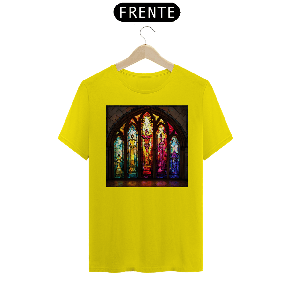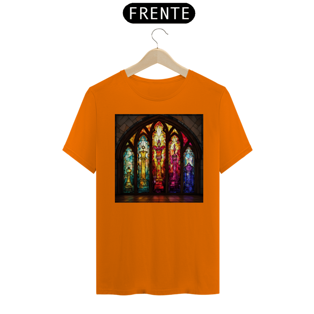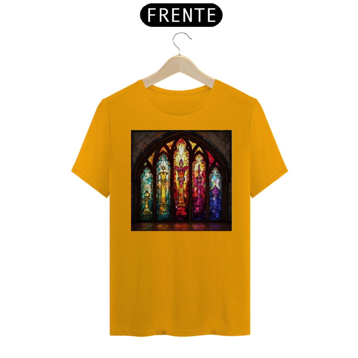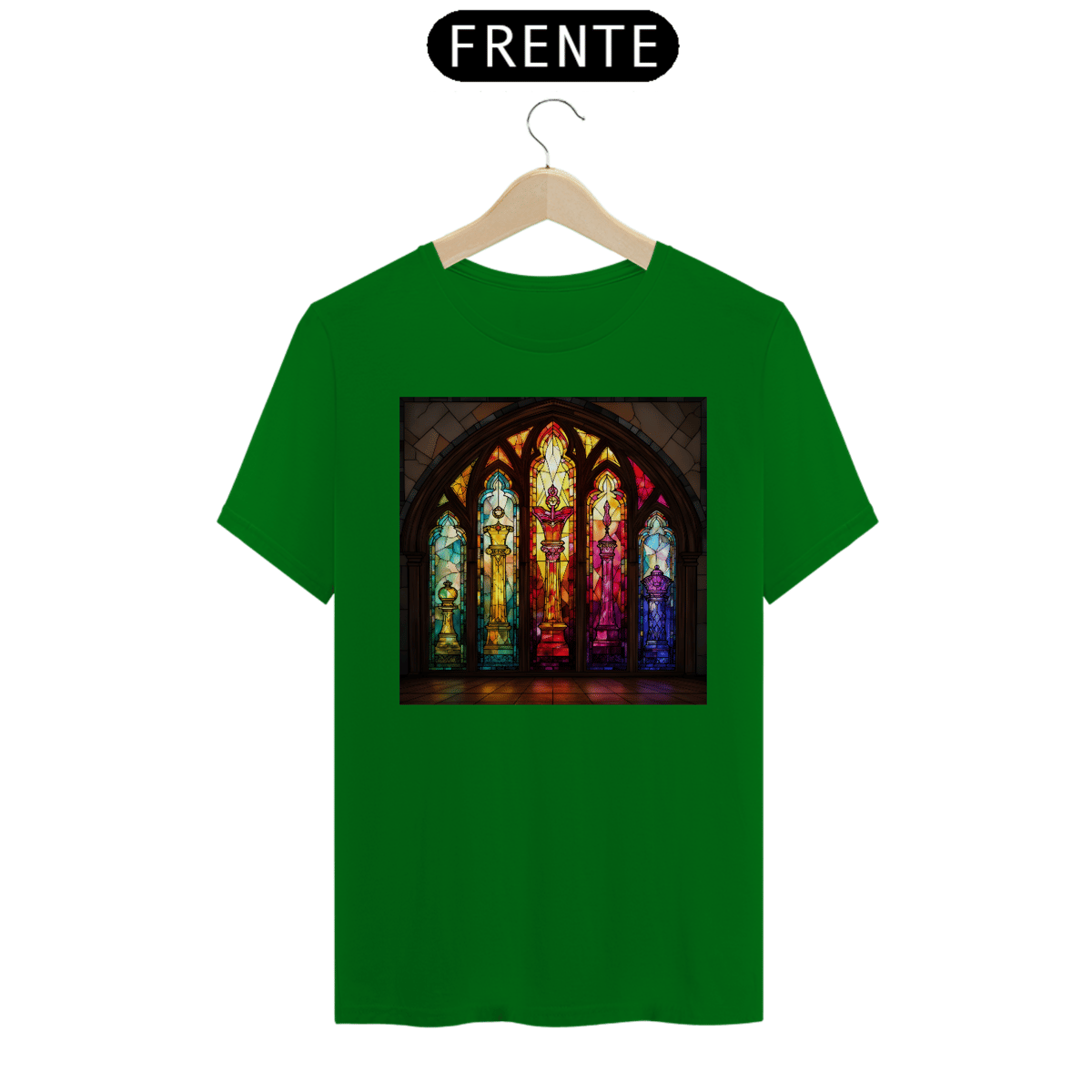 Uma peça para quem aprecia a beleza da estratégia e a força do simbolismo! A camiseta "No More Knights" apresenta uma estampa única: um vitral gótico imponente, sem cavaleiros — apenas as peças essenciais do jogo.